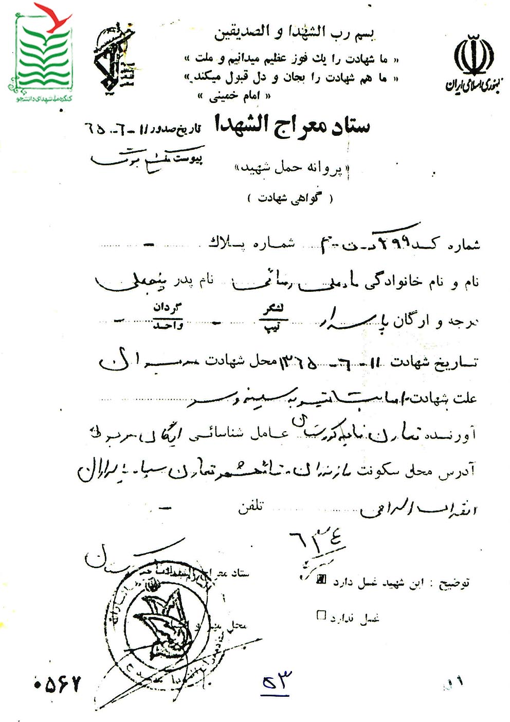 تاريخ شهادت :
