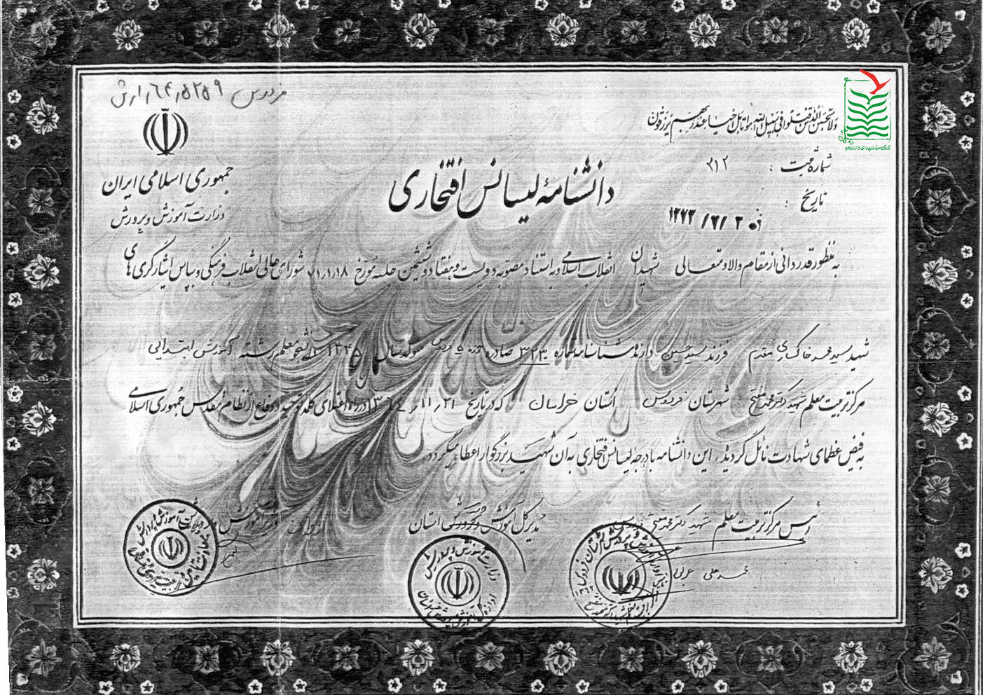 دانشگاه : مركز تربيت معلم شهيد مفتح فردوس