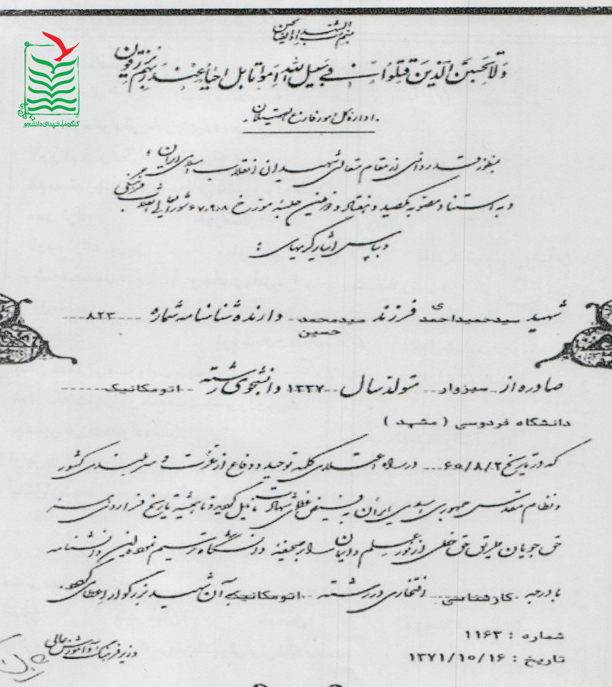 تاريخ تولد : 1337/10/01