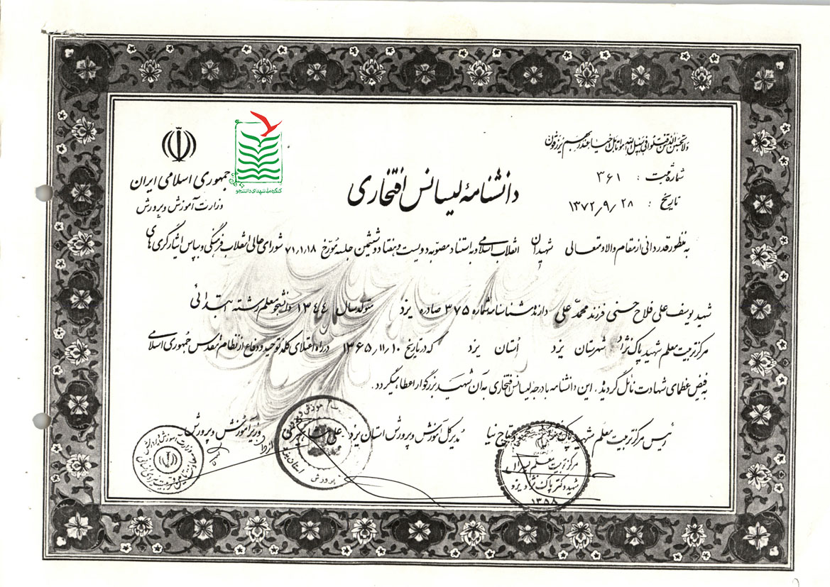 مكان تولد : تفت - روستاي حسيني (يزد)