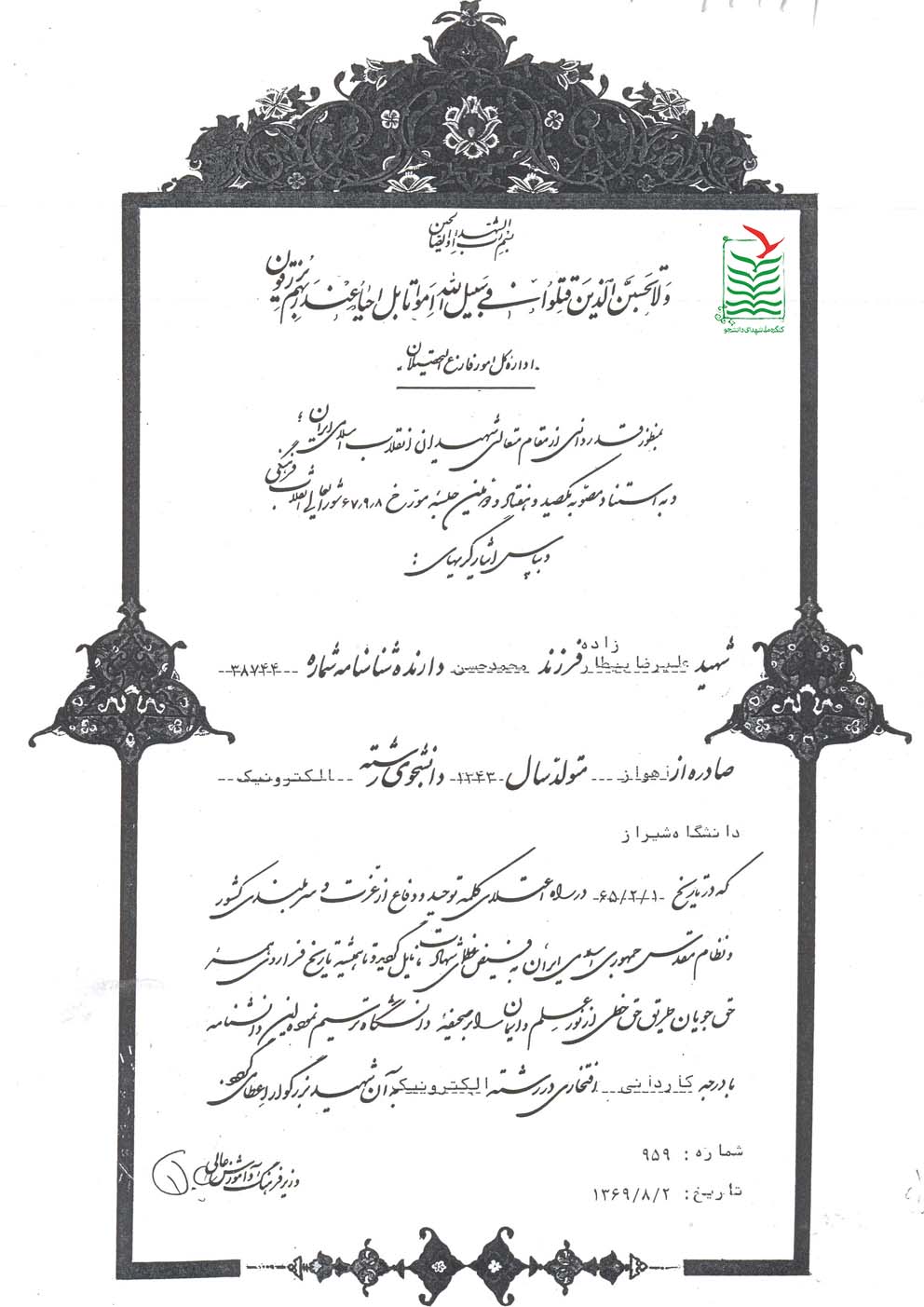 با تحقيقاتي كه انجام شده است متوجه شده ايم بانك اطلاعاتي جامعي در مورد شهداي دانشجو در كشور وجود ندارد، از اين رو سعي كرديم اين بانك اطلاعاتي را ايجاد كنيم؛ تا امروز اطلاعات نزديك به ۴۵۰۰ نفر از شهداي دانشجو گردآوري شده است.