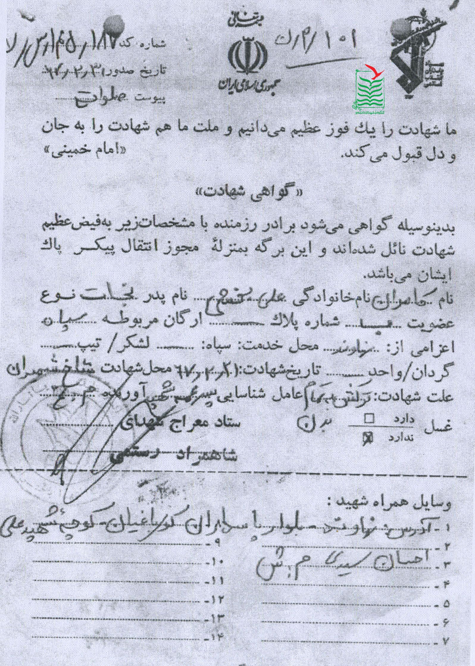 تاريخ شهادت : 1367/02/21