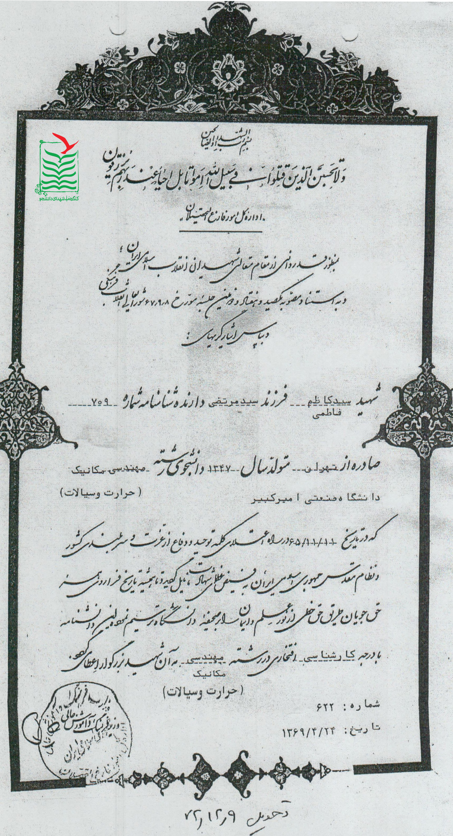 نام پدر : سيدمرتضي