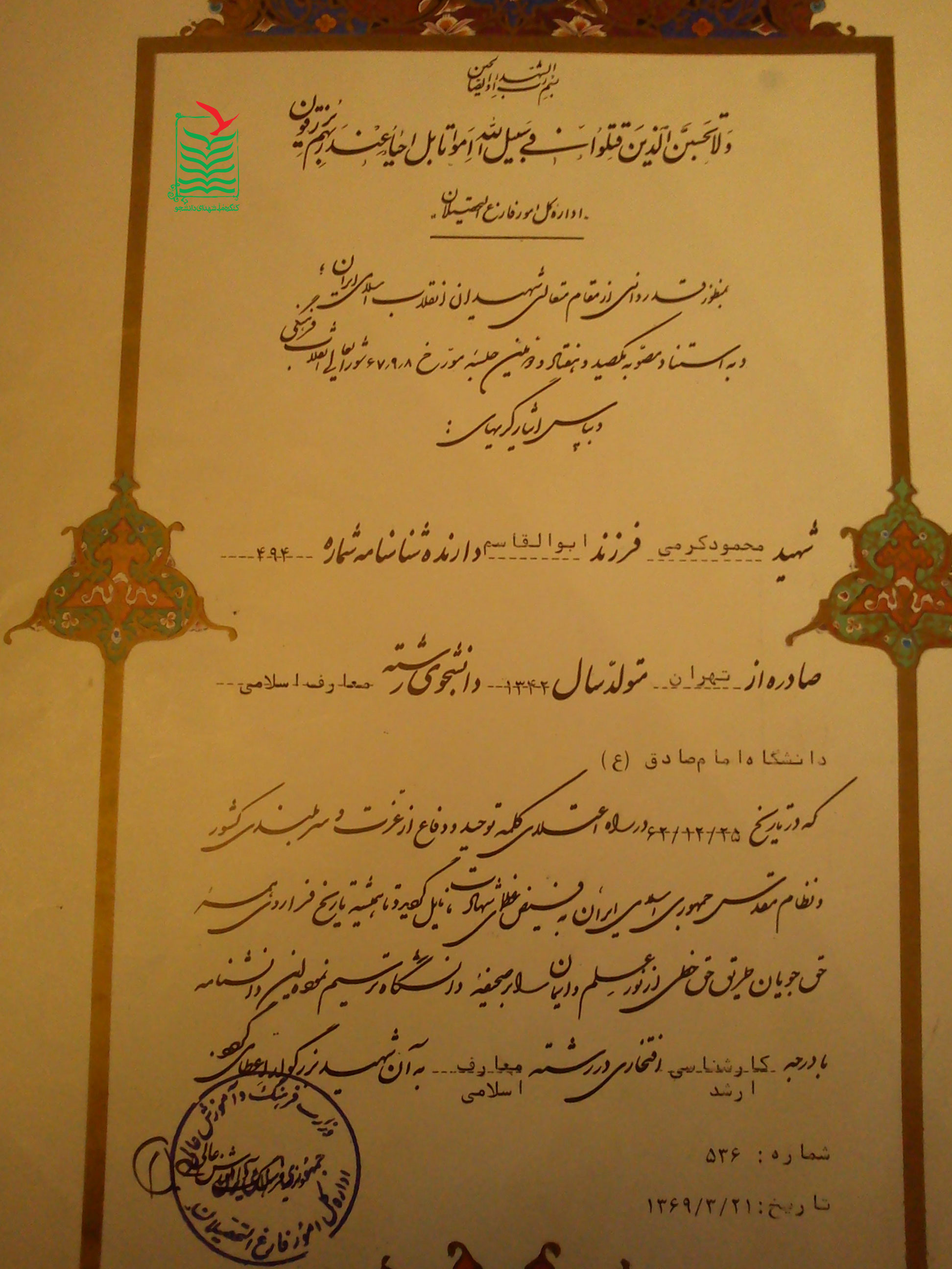 با تحقيقاتي كه انجام شده است متوجه شده ايم بانك اطلاعاتي جامعي در مورد شهداي دانشجو در كشور وجود ندارد، از اين رو سعي كرديم اين بانك اطلاعاتي را ايجاد كنيم؛ تا امروز اطلاعات نزديك به ۴۵۰۰ نفر از شهداي دانشجو گردآوري شده است.