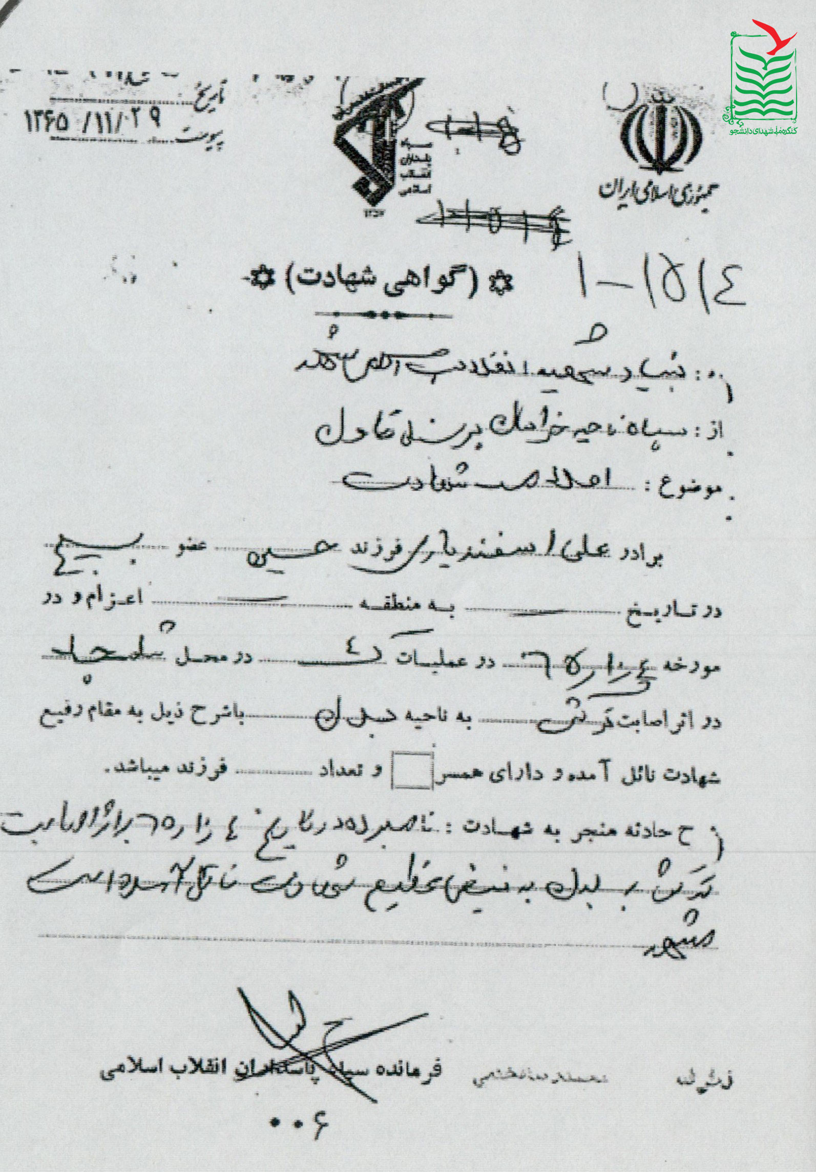 تاريخ شهادت : 1365/10/04