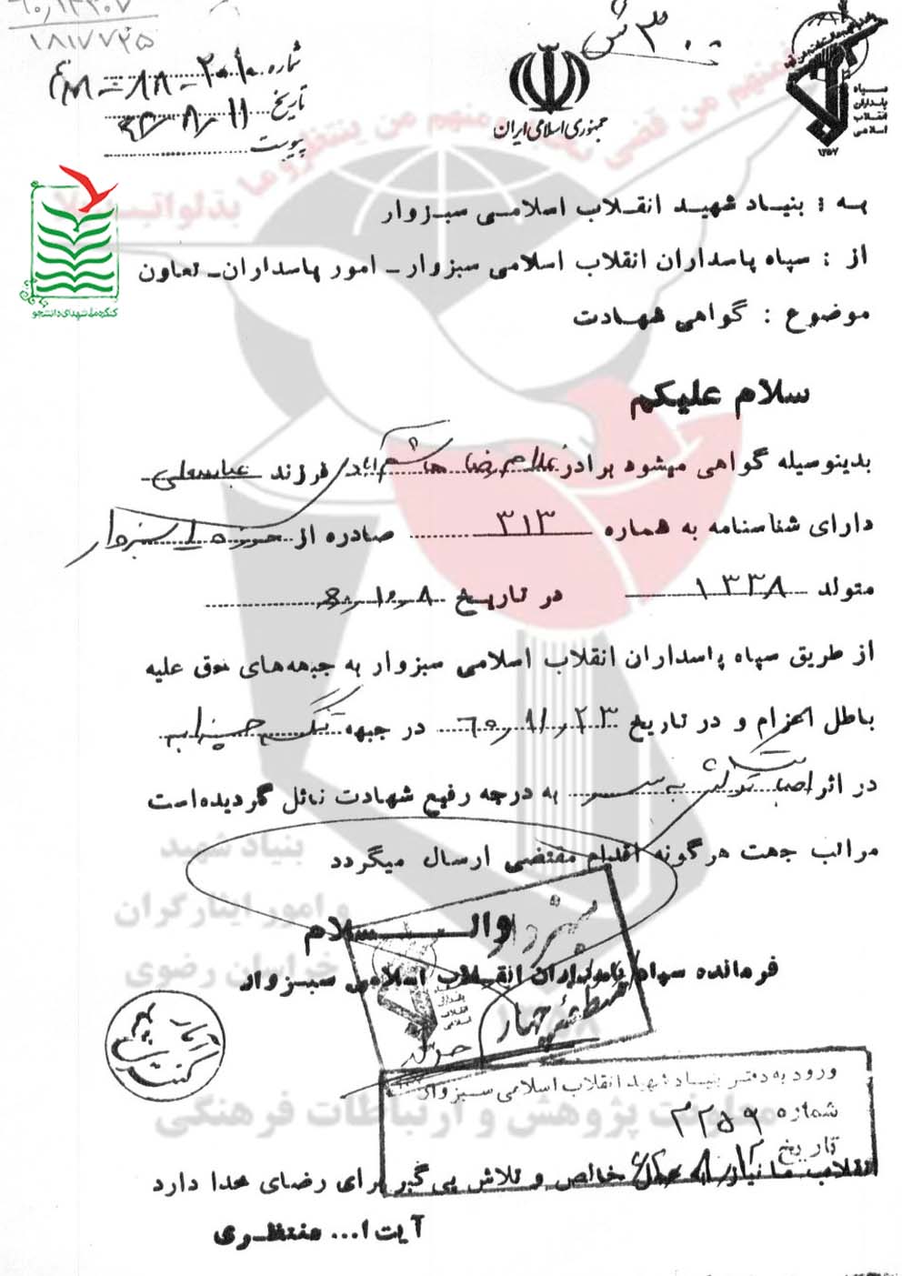 تاريخ تولد : 1338/03/07