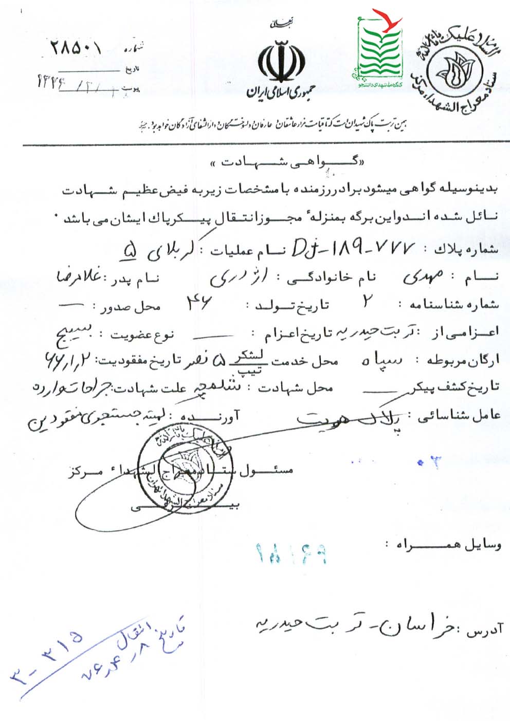 مكان تولد : تربت حيدريه - روستاي زرمهر (خراسان رضوي)