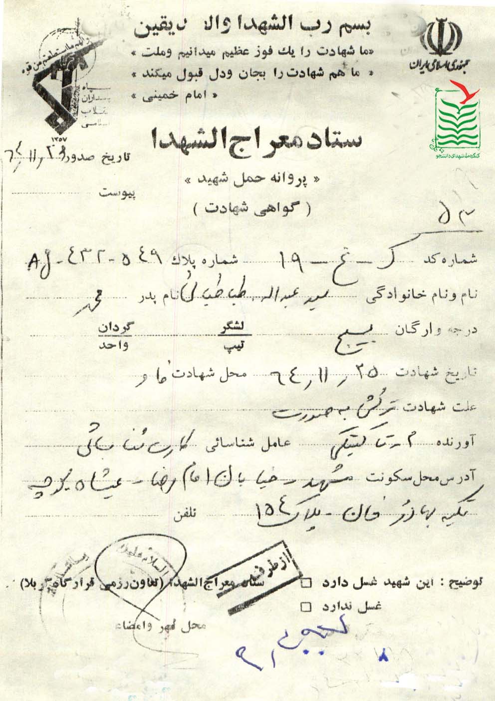 تاريخ شهادت : 1364/11/25