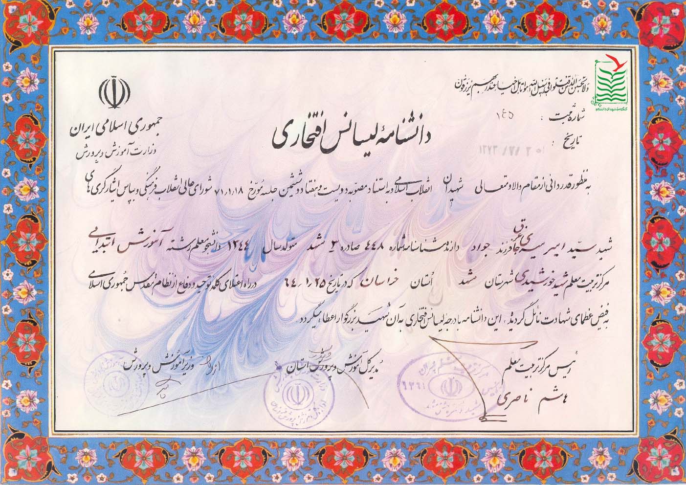 دانشگاه : مركز تربيت معلم شهيد خورشيدي مشهد