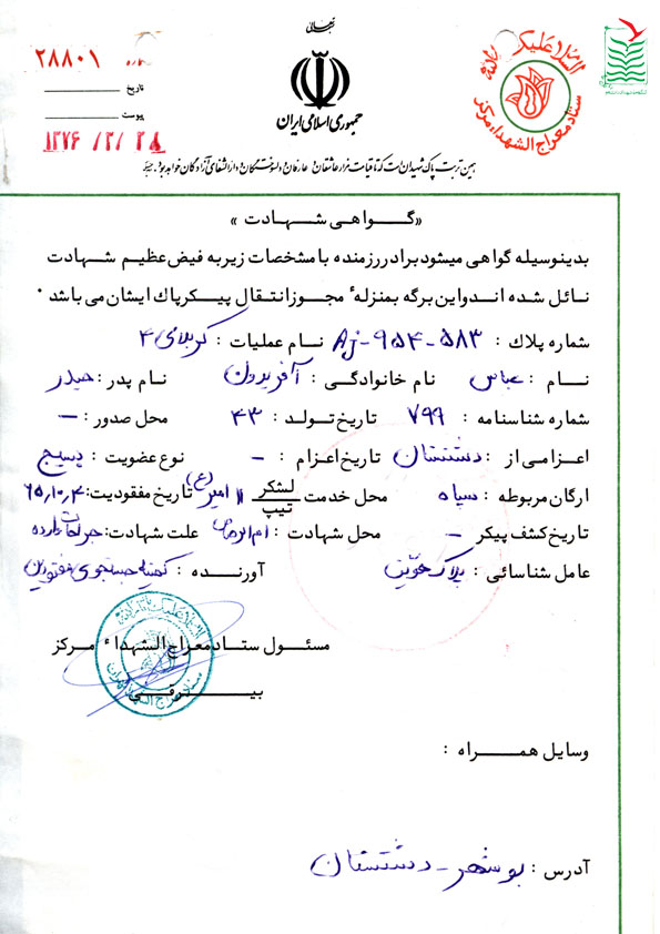 مكان تولد : روستاي دشتي-دشتستان (بوشهر)
