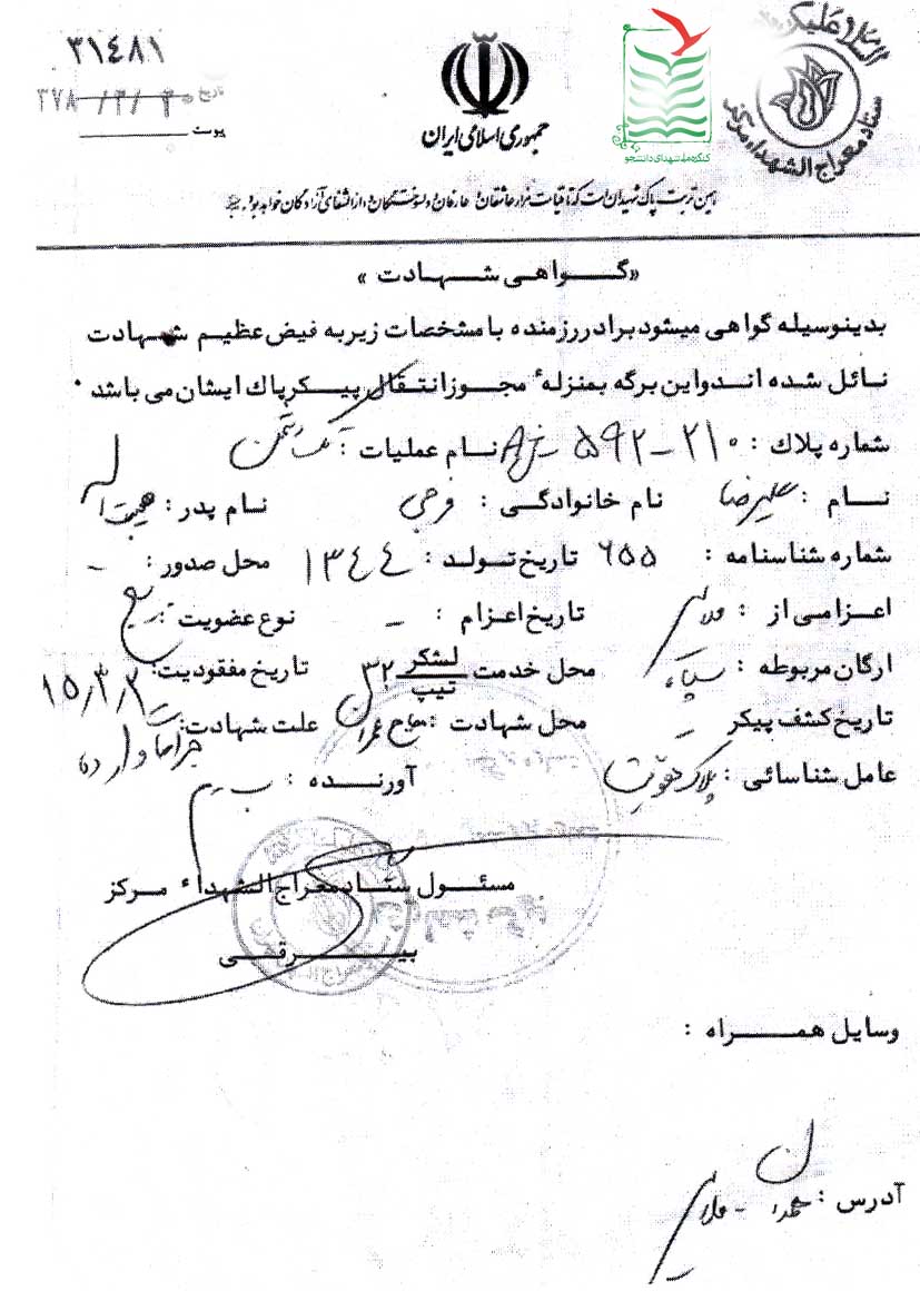 تاريخ شهادت : 1365/3/2