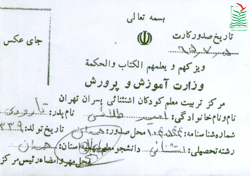 دانشگاه : مركز تربيت معلم بلال حبشي تهران