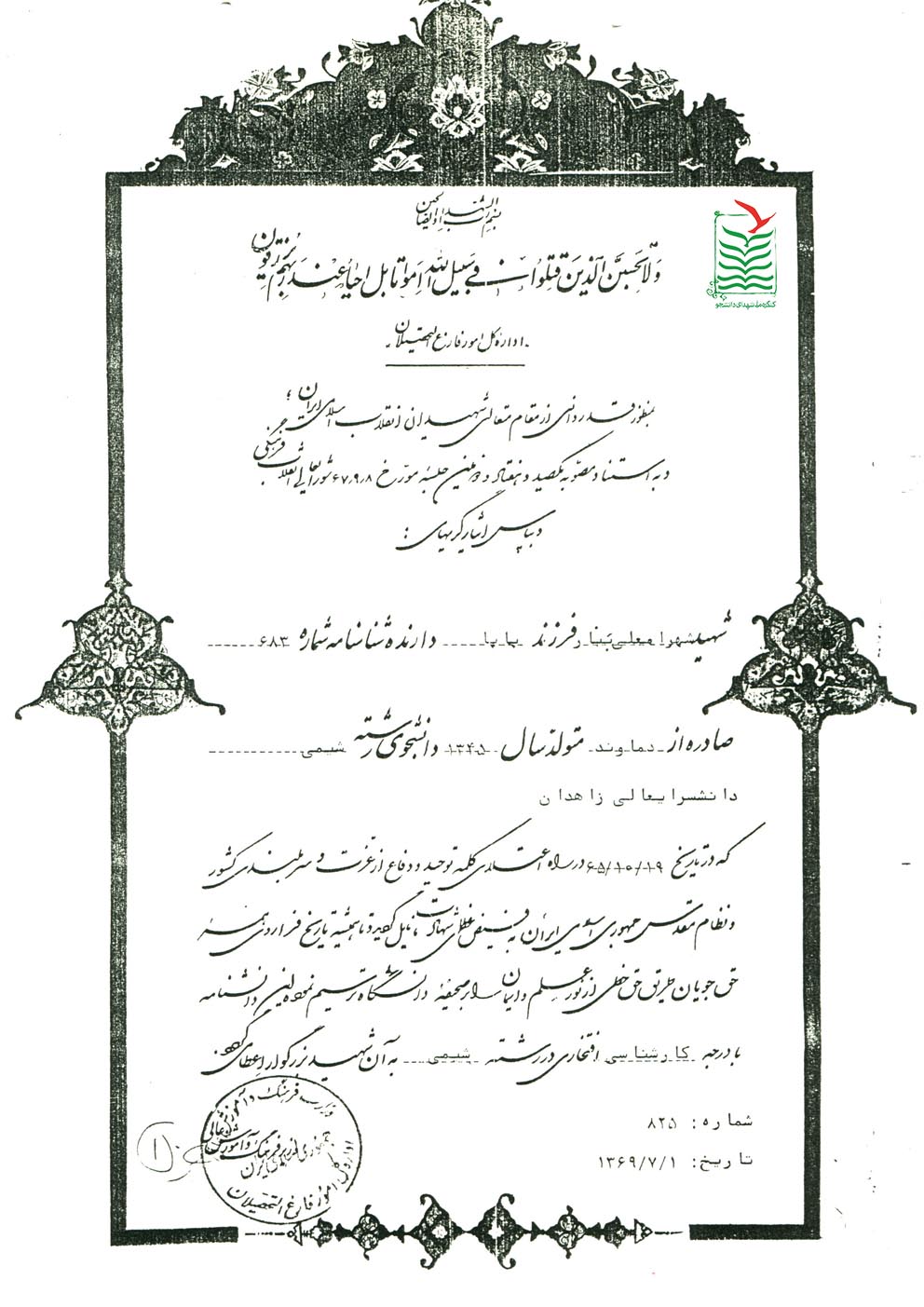 مكان تولد : فيروزكوه - روستاي طارس (استان تهران)