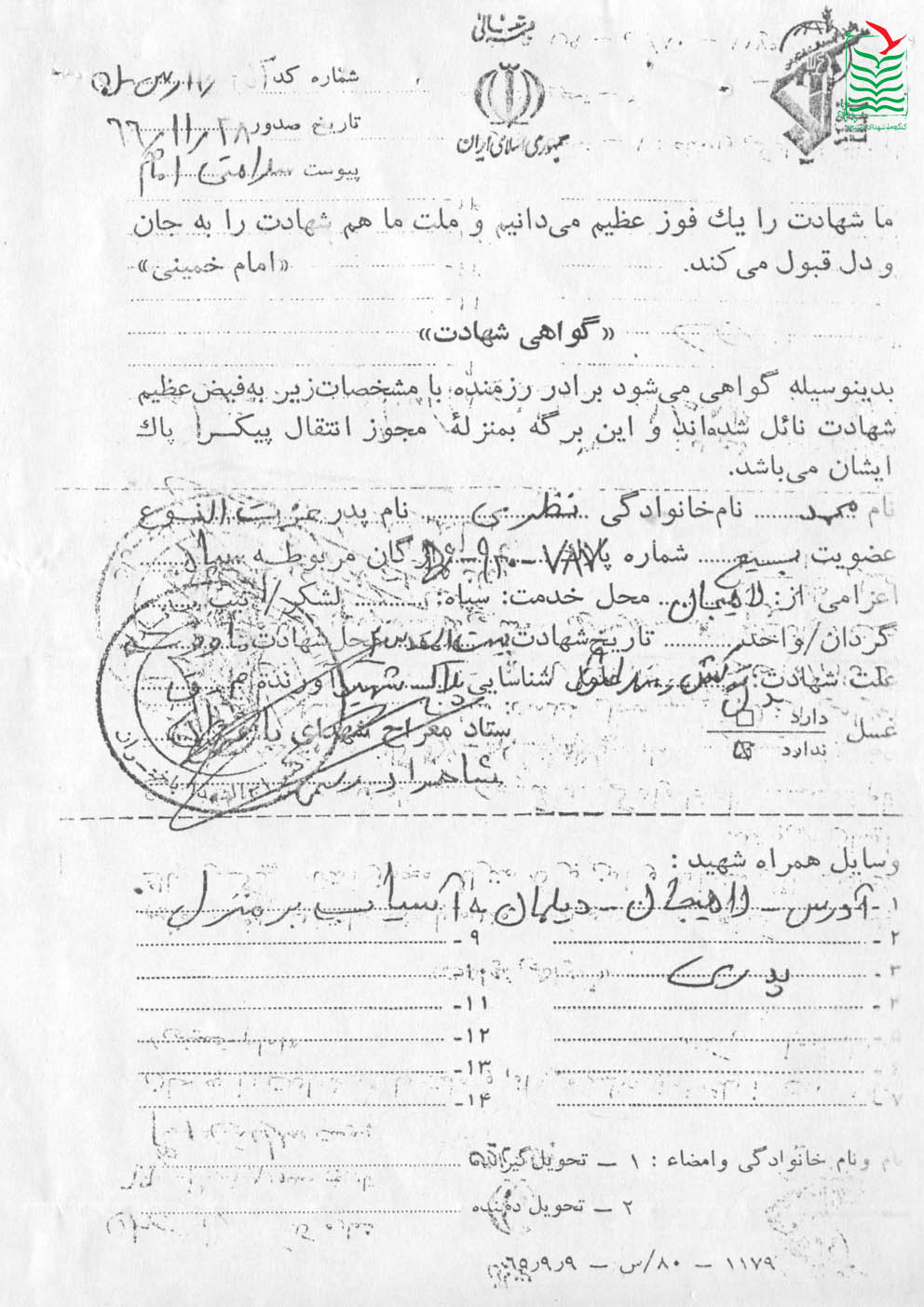 تاريخ شهادت : 1366/11/25