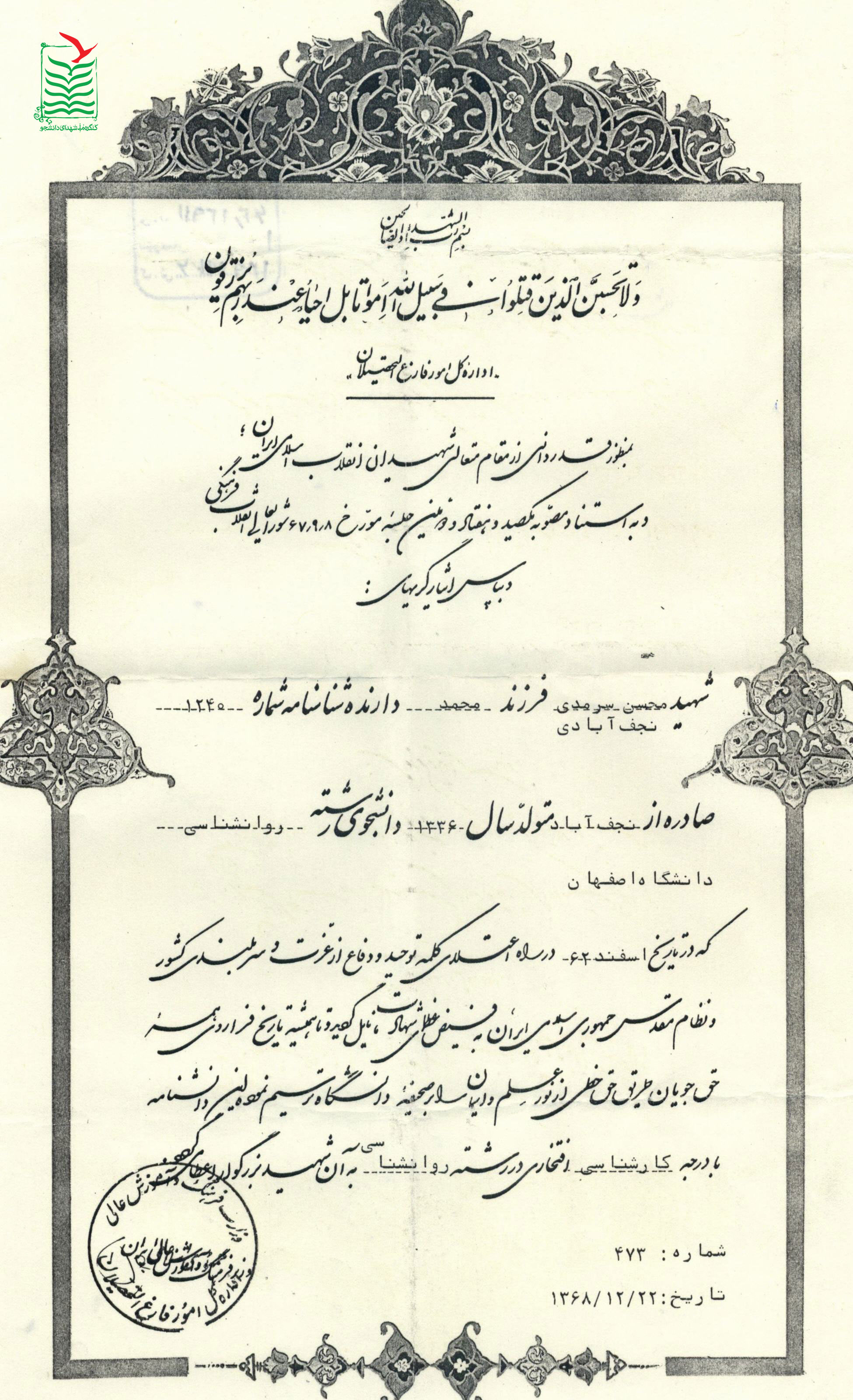 مكان تولد : نجف آباد (اصفهان)